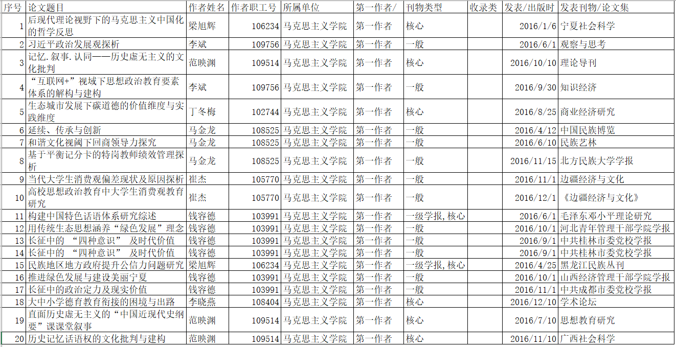 2016年度科研成果【学术论文】统计表(社科类)